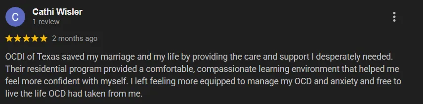 Your mental health deserves the same expert care as your physical health. At the OCD Institute of Texas, our dedicated team is committed to providing evidence-based, compassionate treatment tailored to each individual. Whether you're struggling with OCD, anxiety, or a related disorder, we deliver clinical excellence in a warm, home-like environment—because you deserve lasting change.